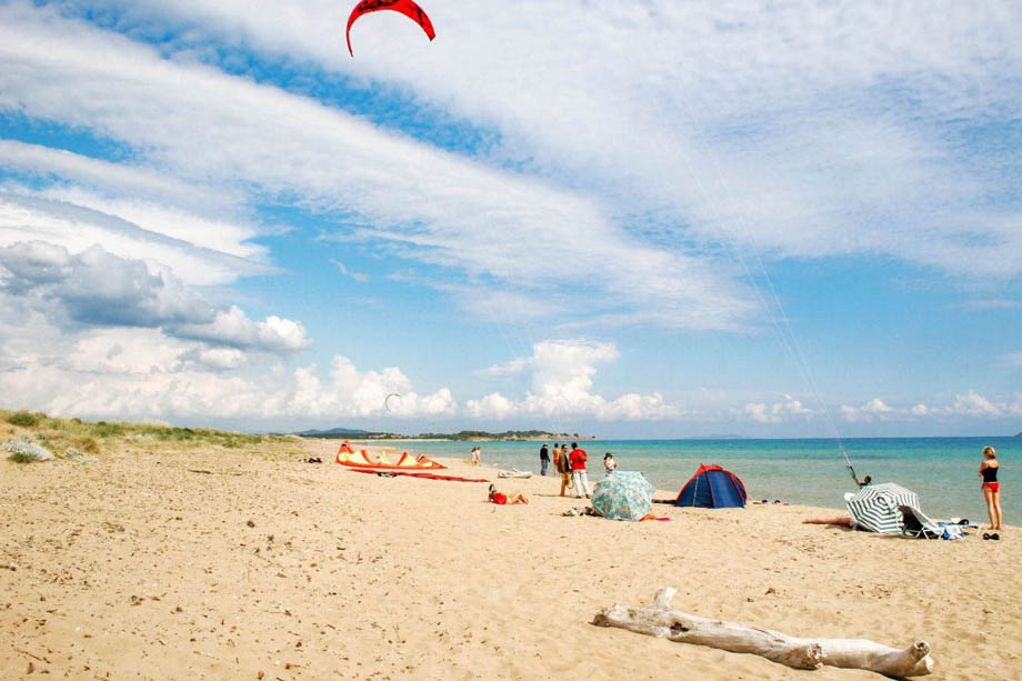 The NATURA-protected seashore of Chalikounas is partly organized, offering some sun loungers and parasols to rent, as well as handy changing booths and outdoor showering facilities! Furthermore, visitors will find a beachside bar/restaurant for a quick snack, a refreshing drink, or a full meal, or even choose one of the available watersports, including SUP surfing, kayaking, kiteboarding, or windsurfing experiences!